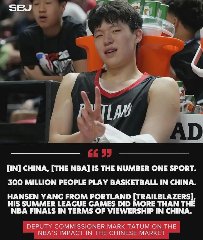值得一提的是,前不久NBA副總裁馬克-塔圖姆談到了楊瀚森,表示后者在夏季聯(lián)賽比賽的收視率比總決賽還要高,他們非常重視中國&亞洲市場。