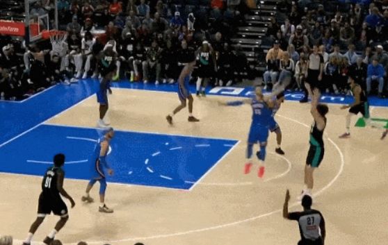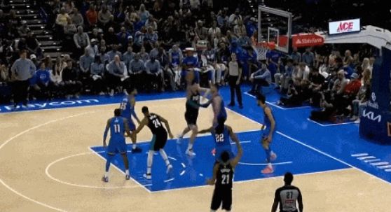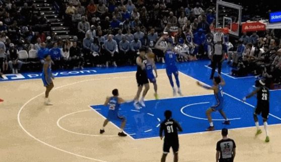 NBA正賽生涯首個三分球。低位單打哈騰,夢幻腳步轉(zhuǎn)身上籃2+1。接隊友傳球,空接單手劈扣。遭遇包夾,精彩傳球助攻隊友三分命中。扮演和平鴿,勸阻沖突。感謝好大哥雷霆早早打花比賽