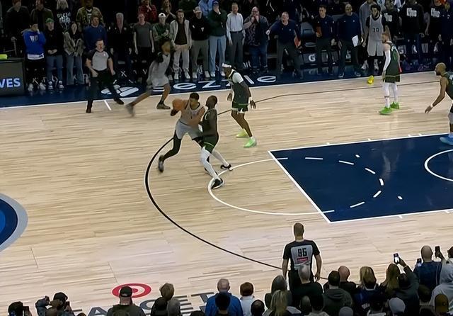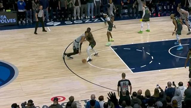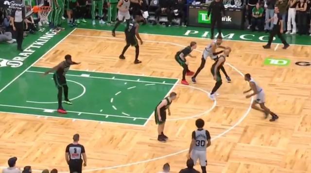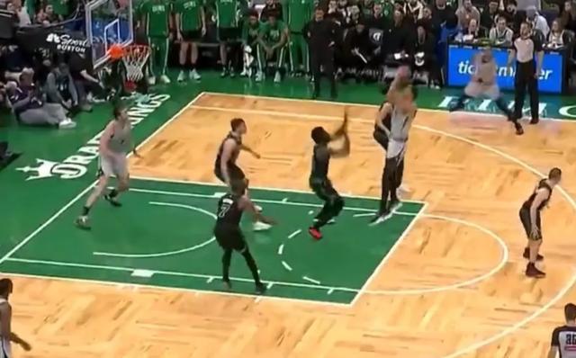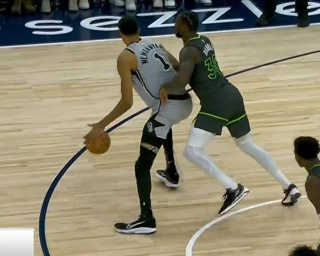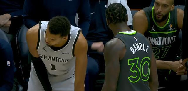 還有一個(gè)回合,文班被蘭德爾逼到了邊線,最終直接倒在場外,裁判沒有吹犯規(guī)而是吹了馬刺出界。