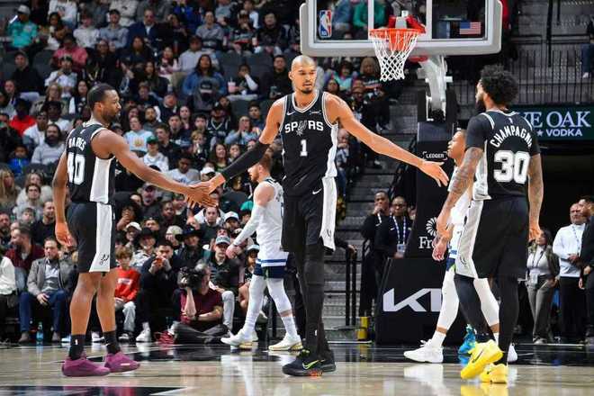 馬刺:文班亞馬39分9籃板,??怂?5分12助攻,凱爾登20分。森林狼:愛德華茲9記三分55分生涯新高,麥克丹尼爾斯23分5籃板5助攻,蘭德爾17分10籃板,迪文琴佐11分,貝蘭熱10分。