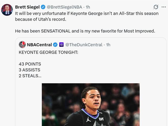 大爆冷!新星喬治轟43分生涯之夜送火箭隊神助攻,愛德華茲空砍38+8難救主淪為背景板。爵士爆冷擒森林狼前一場強強對話不敵馬刺后,森林狼隊迎來與爵士隊的較量,后者本賽季依舊處于
