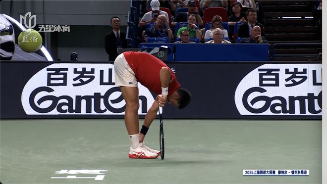 短暫的休息后,38歲的老將依然選擇繼續(xù)戰(zhàn)斗,但是體能已經(jīng)亮起了紅燈。幾乎每打完一分,德約就需要雙手撐著膝蓋緩上一口氣。