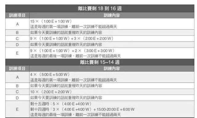 2K周期主要進(jìn)行200米、400米、2K距離等短距離的組合訓(xùn)練,旨在提高2K的速度;10K周期包含部分短距離組合訓(xùn)練,A類(最重要的課表)的距離增加到10K;半馬周期也一樣。