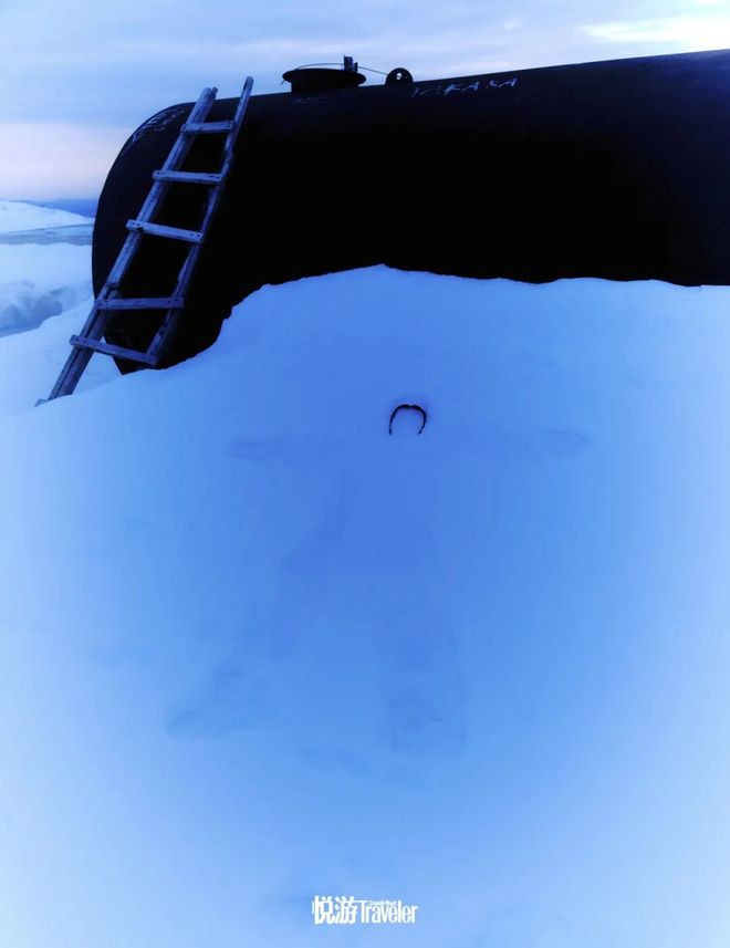 纜車搖晃著繼續(xù)向上,阿爾泰群山就像從鏡頭里推出來一樣,一座座沉甸甸地往遠方延伸。它們早在人類出現(xiàn)以前便已存在,也將在人類消失之后繼續(xù)屹立,一種亙古的、一眼望不到邊的遼闊涌上心際。溫度隨著海拔攀升不斷降低,太陽卻更加亮,前后的路都被雪掩平,皚皚的積雪看不出厚度,一腳踩下去就沒了腳踝。表層的薄雪之下是堅冰,穿著皮鞋的魏大勛開起了玩笑:“穿這雙鞋可以直接滑了?!惫ぷ魅藛T不留神兒,連續(xù)摔了好幾跤,魏大勛柔聲提醒大家小心。但雪鄉(xiāng)里長大的人都不怕摔,跌倒了會自個兒爬起來,拍拍手繼續(xù)走,人抵御自然寒流的能力強了,抵御生活寒流的能力自然也會漸長,這在東北話里叫“皮實”。