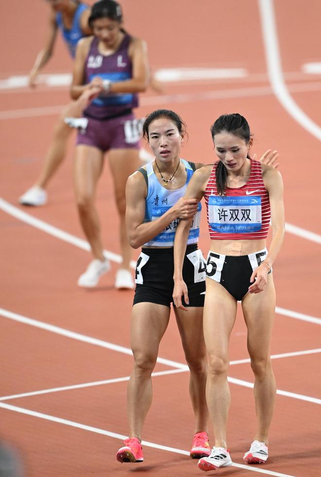 3000米障礙摘銀后,許雙雙忍不住流下了淚水。隨后的5000米決賽,在廣東奧體中心的凄風(fēng)冷雨之中,她以第8名的成績完賽。
