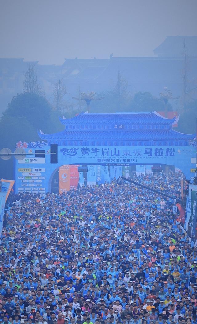 11月23日上午8時(shí),2025蒙牛眉山東坡馬拉松暨跑遍四川(東坡站)在東坡島上激情啟幕,1.7萬名跑者齊聚岷江之畔,以腳步丈量東坡故里的靈秀山水,用奔跑對話千年傳承的詩書文脈。
