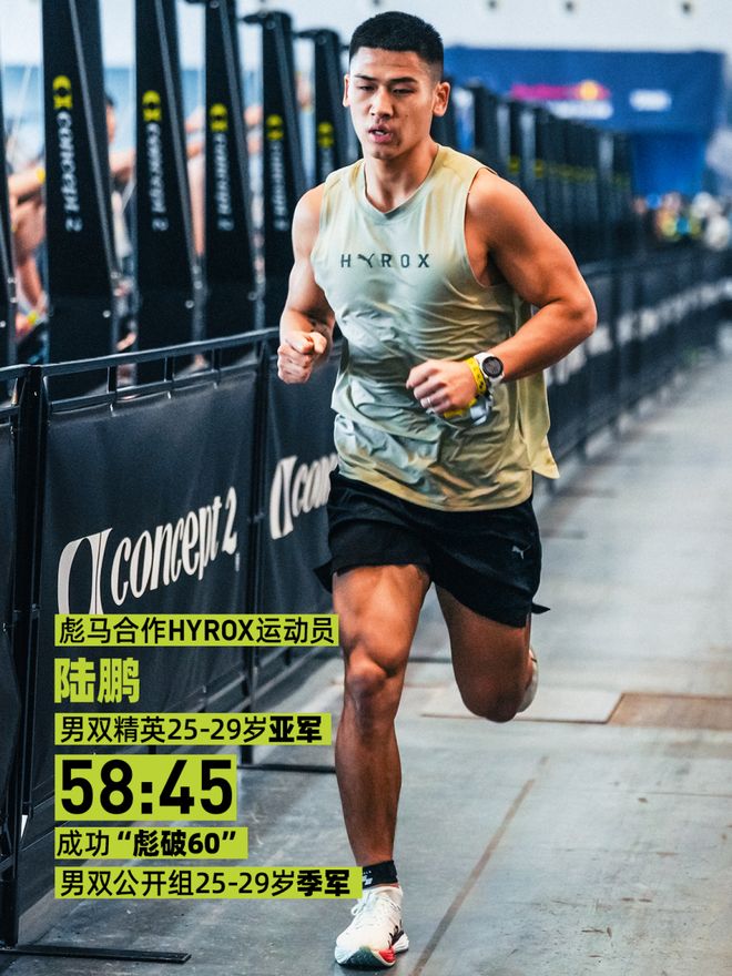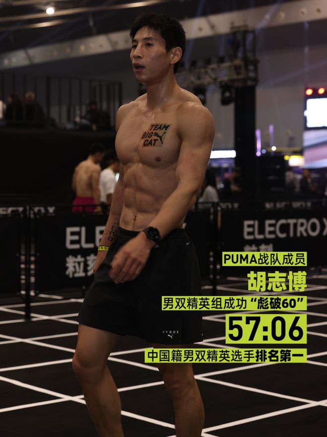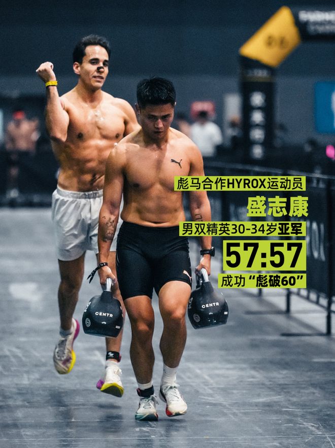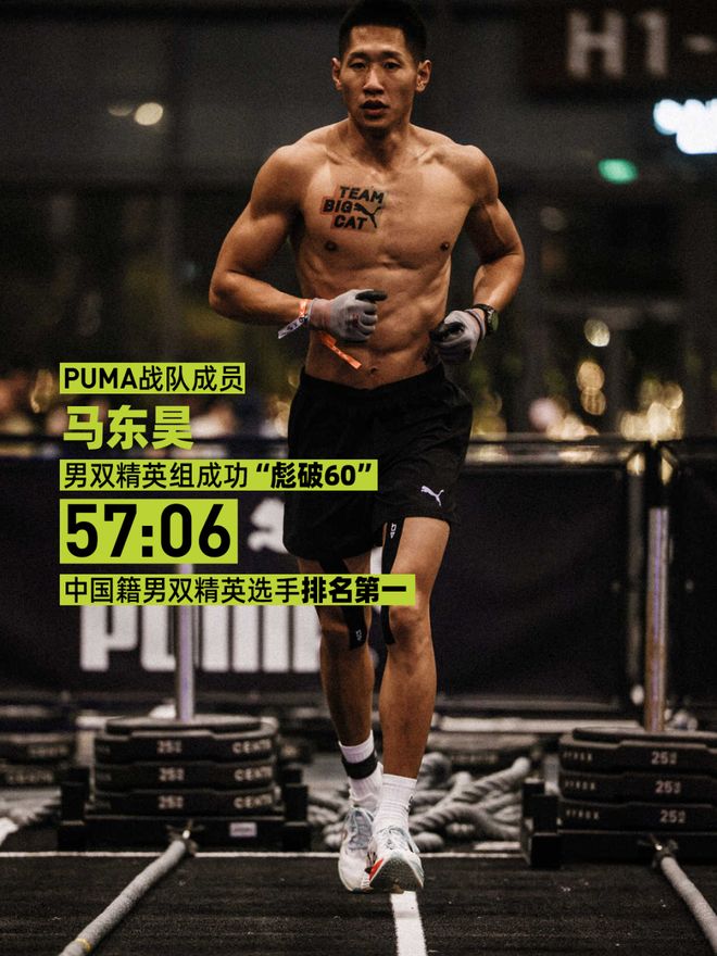 HYROX風(fēng)潮席卷國內(nèi),推動賽事水準(zhǔn)持續(xù)躍升,中國選手的表現(xiàn)也因此不斷突破。本站比賽中,彪馬中國合作的HYROX運動員盛志康、陸鵬,以及彪馬戰(zhàn)隊成員馬東昊、胡志博,在男雙精英組別中均于60分鐘內(nèi)完賽,成功「彪破60」。