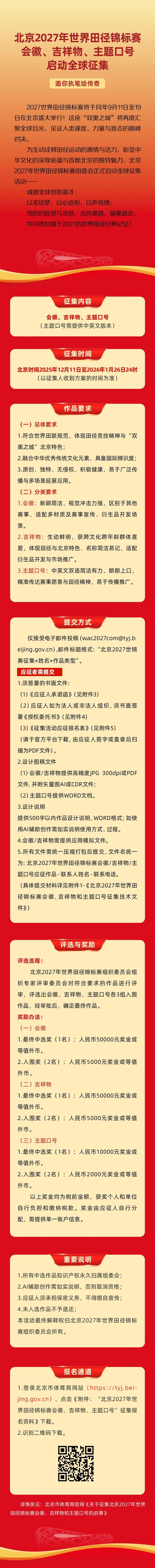 邀你執(zhí)筆繪傳奇!北京2027年世界田徑錦標賽會徽、吉祥物及主題口號全球征集啟動(內(nèi)附長圖)
