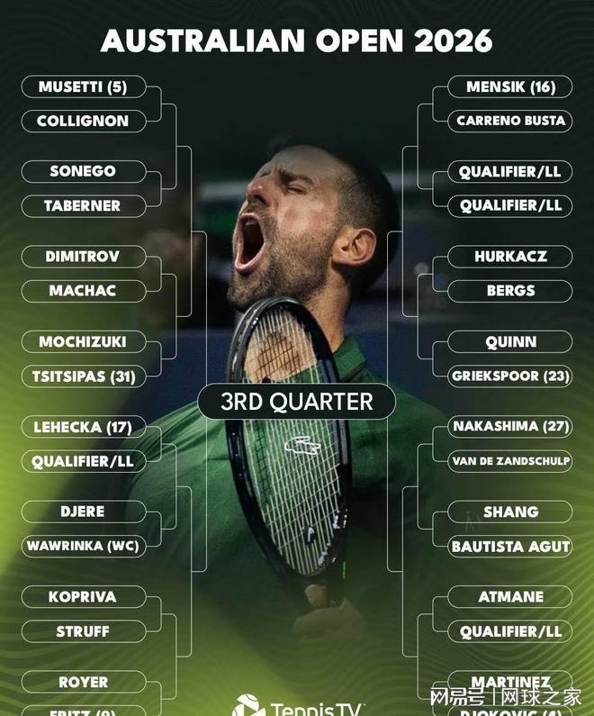 澳網(wǎng)簽表公布:德約辛納同區(qū),阿卡直通四強!