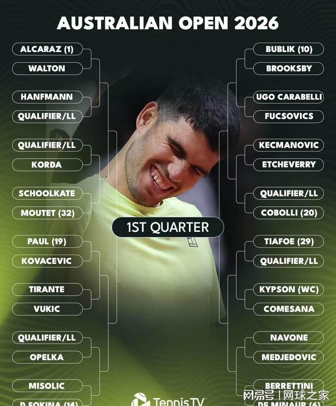 備受關(guān)注的澳網(wǎng)抽簽今日正式揭曉,讓我們看看這項開年大滿貫?zāi)凶訂未虻暮灡砬闆r。