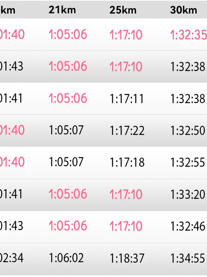比賽前半程,劉敏狀態(tài)火熱,一直處在國內(nèi)領先位置。她在男子選手的陪同下,一路領跑。25公里時,劉敏的預計完賽時間甚至指向了2:27:35,有望大幅刷新PB。
