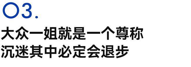 你看去年那會(huì)兒,我們預(yù)估我這個(gè)大眾一姐的尊稱估也就維持個(gè)半年,我們自己其實(shí)心里都有底。因?yàn)榇蠹叶紩?huì)進(jìn)步。我預(yù)估如今這個(gè)大眾一姐位置可能也就一年,如果我不進(jìn)步的話,可能也就是個(gè)一年。我是說,大家都在進(jìn)步,你不可能一直把持著這個(gè)位置,你也不能就沉迷在這種尊稱里邊,那樣的話必定會(huì)退步的。