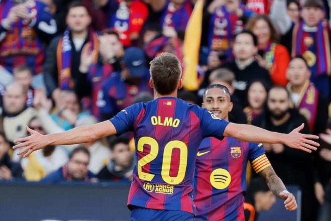 第81分鐘,古里迪前插形成單刀機會拔腳怒射,霍安-加西亞臨危不亂果斷出擊貢獻精彩撲救,也拒絕了對手的扳平好戲。第93分鐘,阿拉維斯全體壓上暴露空檔,奧爾莫中路接到卡薩多傳球后立馬分向右路后立馬前插,亞馬爾心領(lǐng)神會斜塞,奧爾莫推射鎖定勝局完成梅開二度,3:1!最終巴薩主場3:1拿下,多賽1場后,反超皇馬2分登頂西甲榜首。