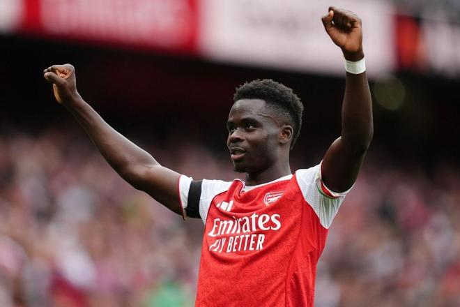 據(jù)統(tǒng)計(jì),過去4次對陣死敵熱刺,薩卡都直接參與進(jìn)球,斬獲2球2助攻。在英超歷史上,只有皮雷(連續(xù)7次)、阿德巴約(連續(xù)6次)和哈里-凱恩(連續(xù)5次)在北倫敦德比連場參與進(jìn)球場次比薩卡更多。
