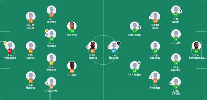 水晶宮首發(fā):1-亨德森、17-克萊因(77'12-烏切)、26-理查茲、5-拉克魯瓦、6-格伊、3-米切爾、20-沃頓、18-鐮田大地(67'19-休斯)、10-皮諾、7-伊斯梅拉-薩爾、14-馬特塔(63'9-恩凱蒂亞)