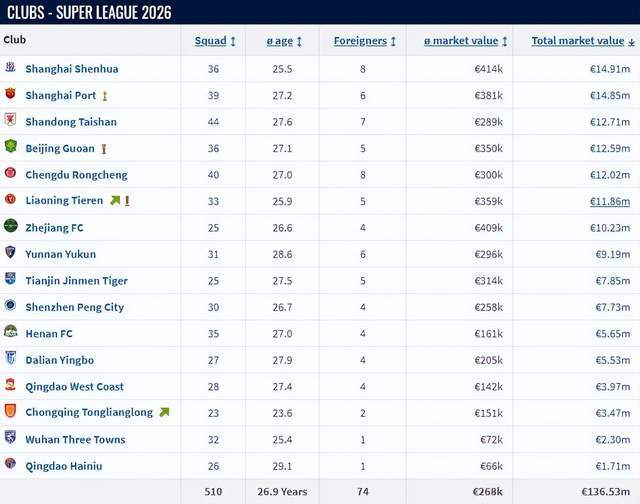 更恐怖的是,全隊(duì)德轉(zhuǎn)即時(shí)身價(jià)已經(jīng)達(dá)到1186萬歐,作為一支中超升班馬,竟然直接排進(jìn)了前6名,僅次于申花、海港、泰山、國(guó)安和成都蓉城,超越了浙江、云南玉昆、天津津門虎等10支中超勁旅,非常值得期待。